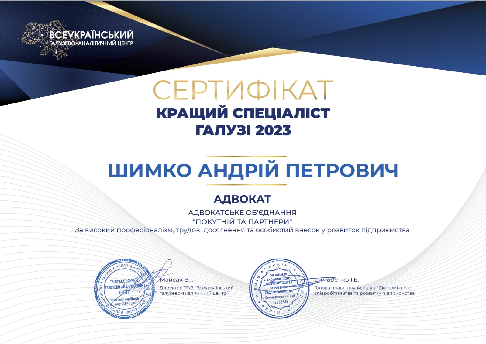 Адвокатський досвід з 2019 року, в АО “Покутній та партнери” – з 2021 року